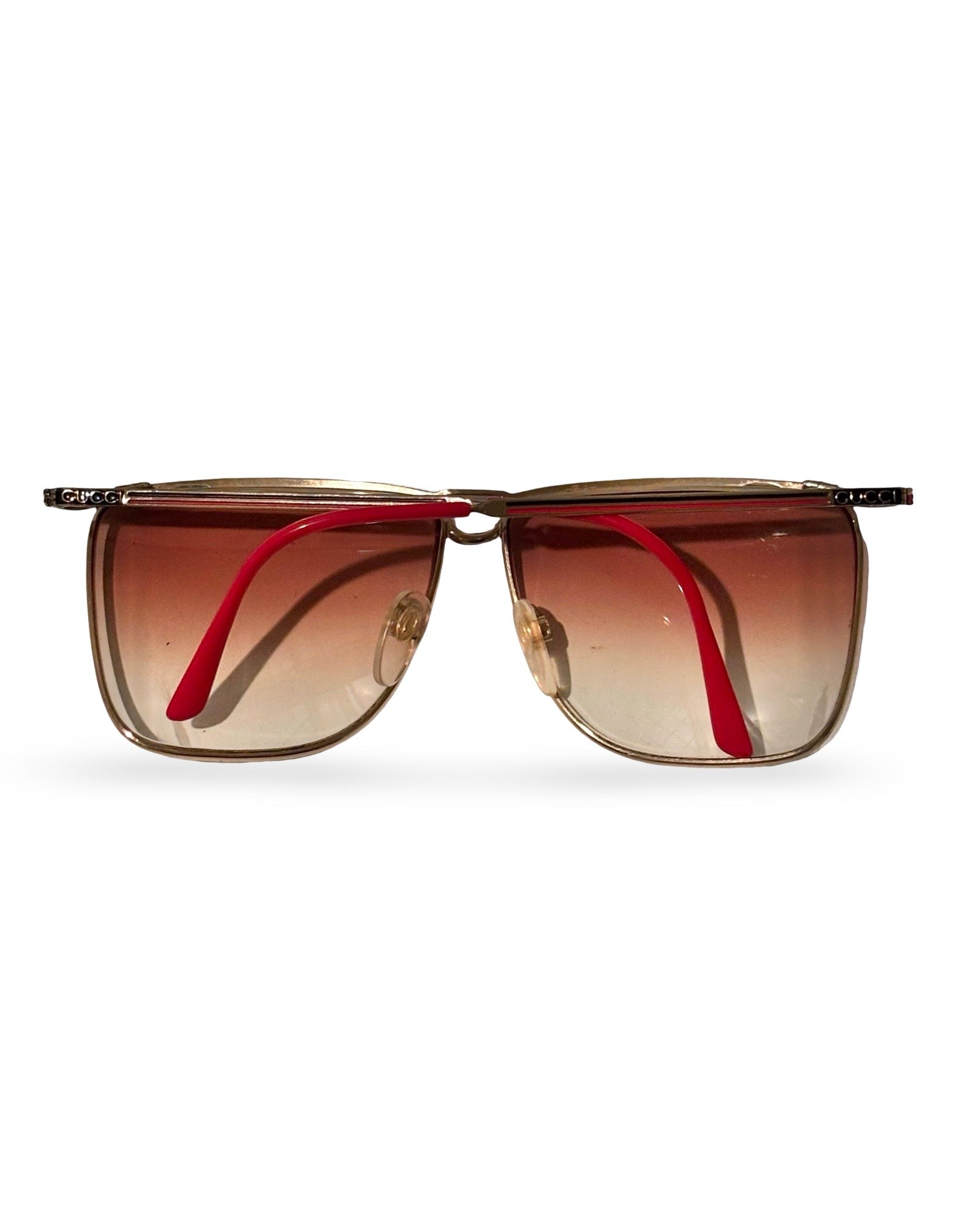 Exude timeless luxury with these vintage 1970s Gucci 2204 18A sunglasses. Crafted in Italy, they feature a gold-plated frame and Gucci’s signature stirrup-shaped bridge, accented with subtle red and black enamel stripes for a refined touch. A true collector’s piece that captures the sophistication and craftsmanship of Gucci’s vintage eyewear era. Elegant, rare, and undeniably iconic.