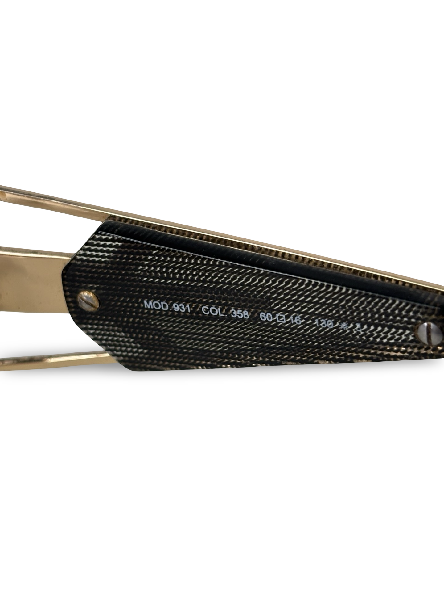 An iconic pair of vintage 1980s Cazal 931 sunglasses, crafted in Germany and celebrated for their bold, abstract design—hallmarks of Cazal’s legendary era. The sculptural gold-tone frames feature subtle glitter accents that catch the light, adding depth and statement glamour without overpowering the silhouette.