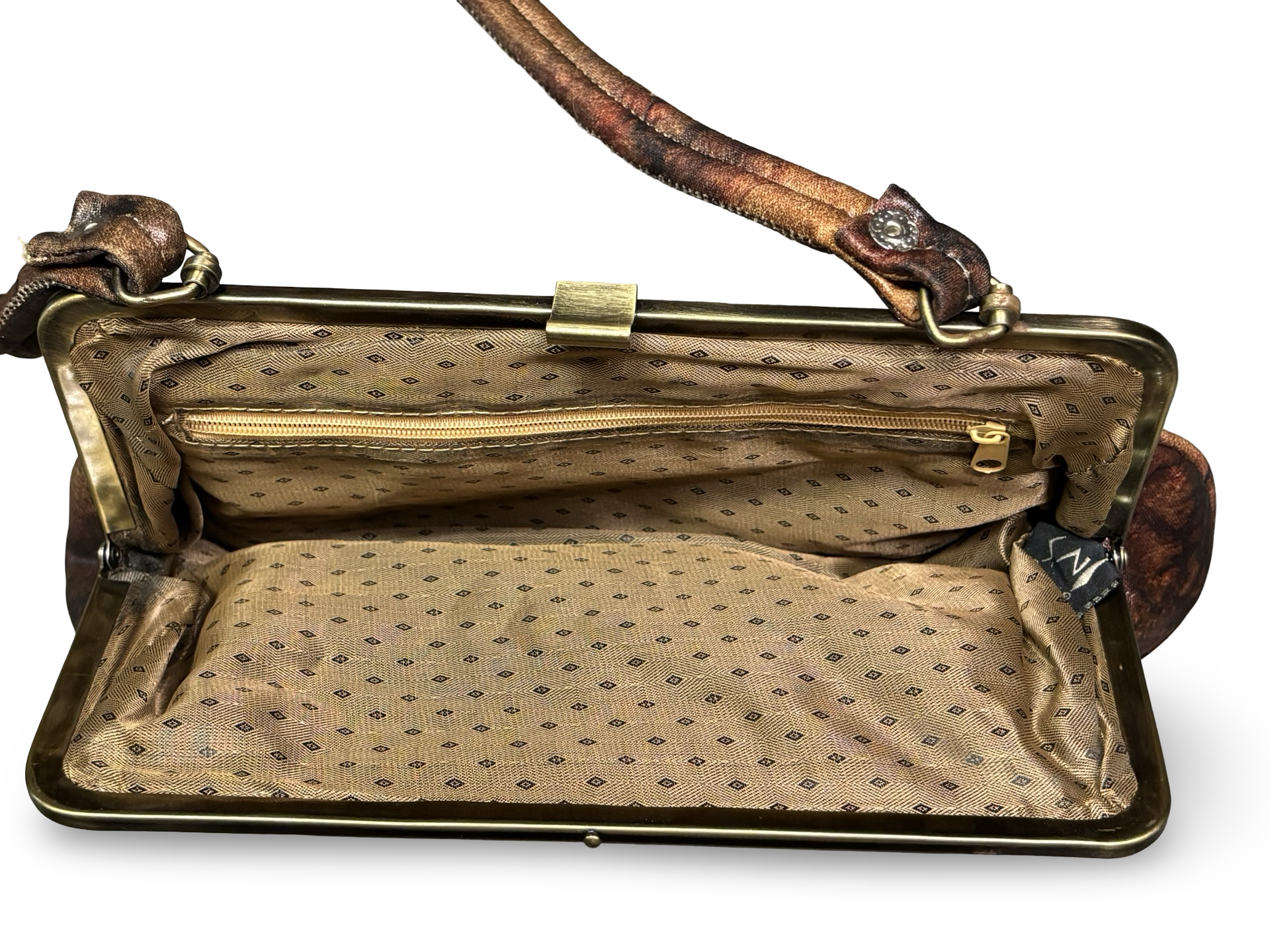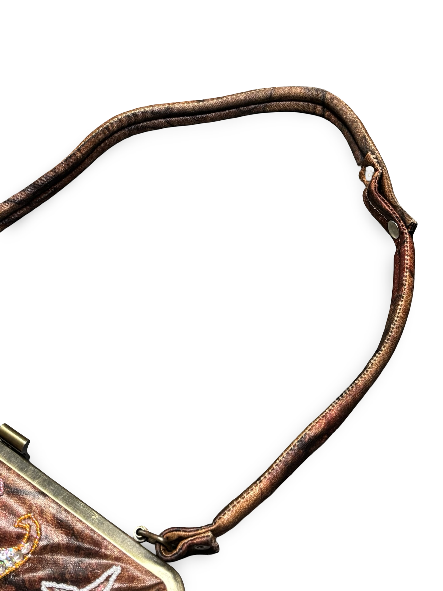 - Condition: Vintage (9/10) — Excellent vintage condition. Light signs of wear consistent with age. Some scratches visible on the brass hardware, typical for vintage pieces. Beading and sequins remain intact overall.