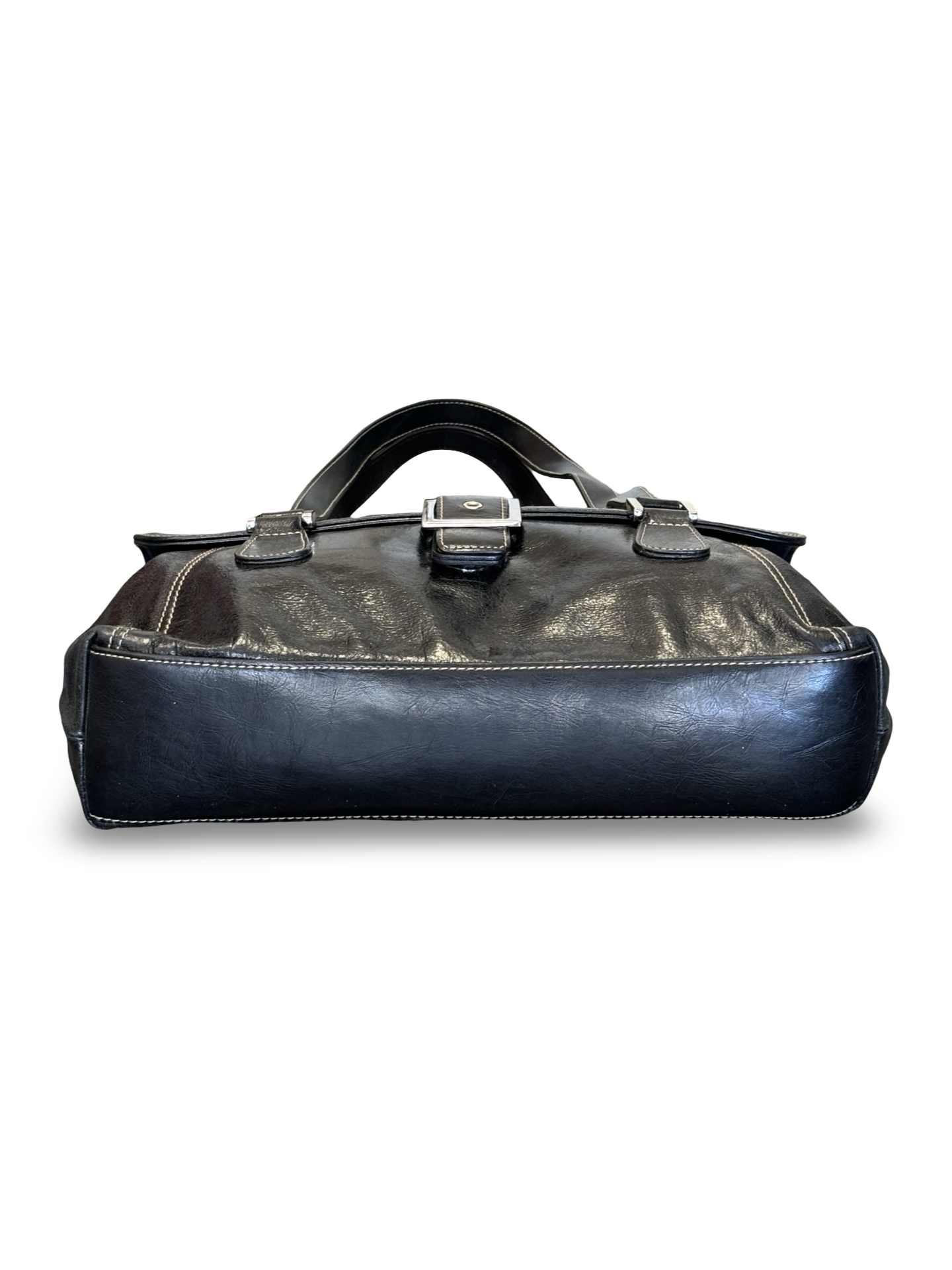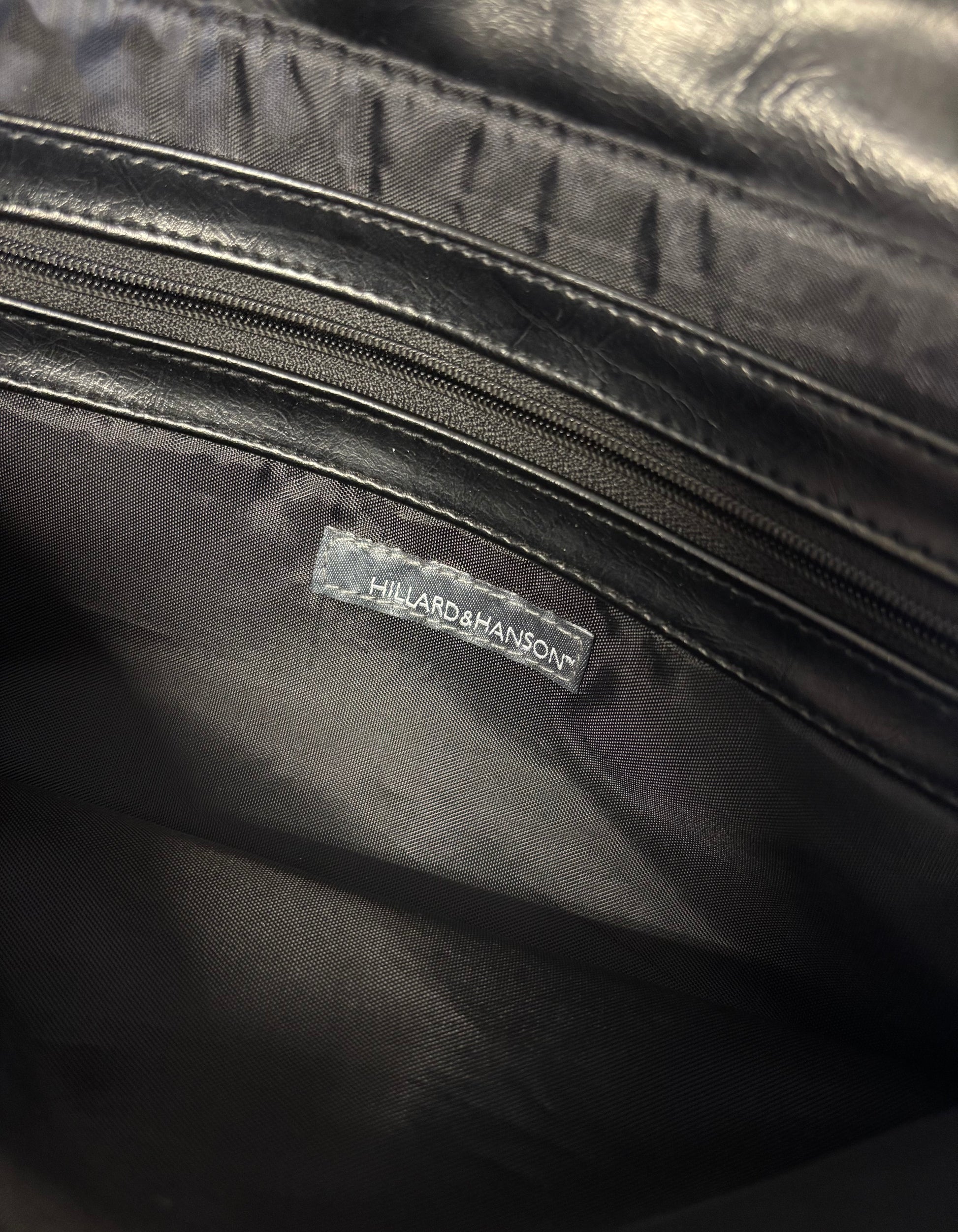 Vintage Y2K Black Leather Hillard & Hanson Shoulder Bag Purse w/ Front Buckle
