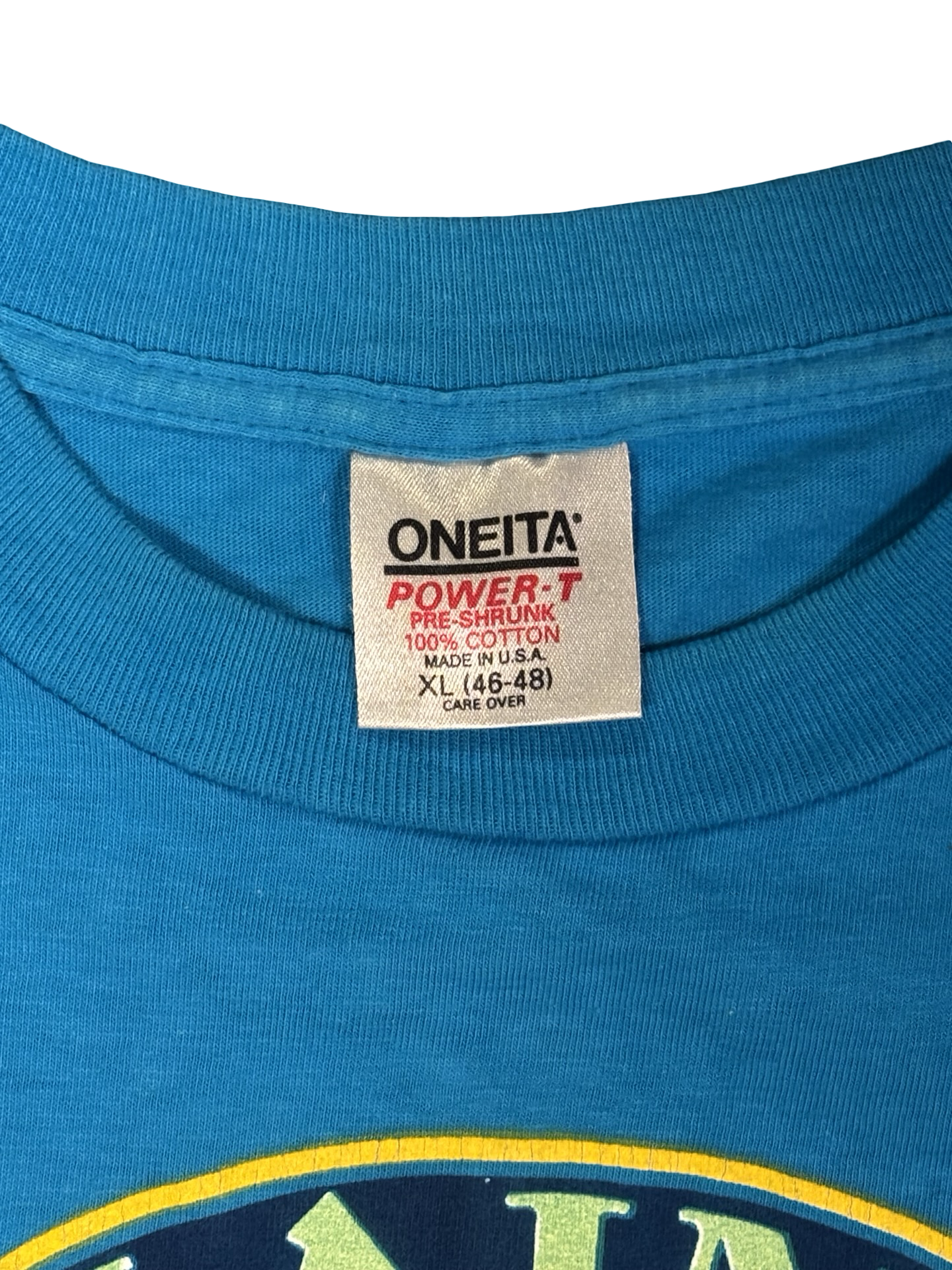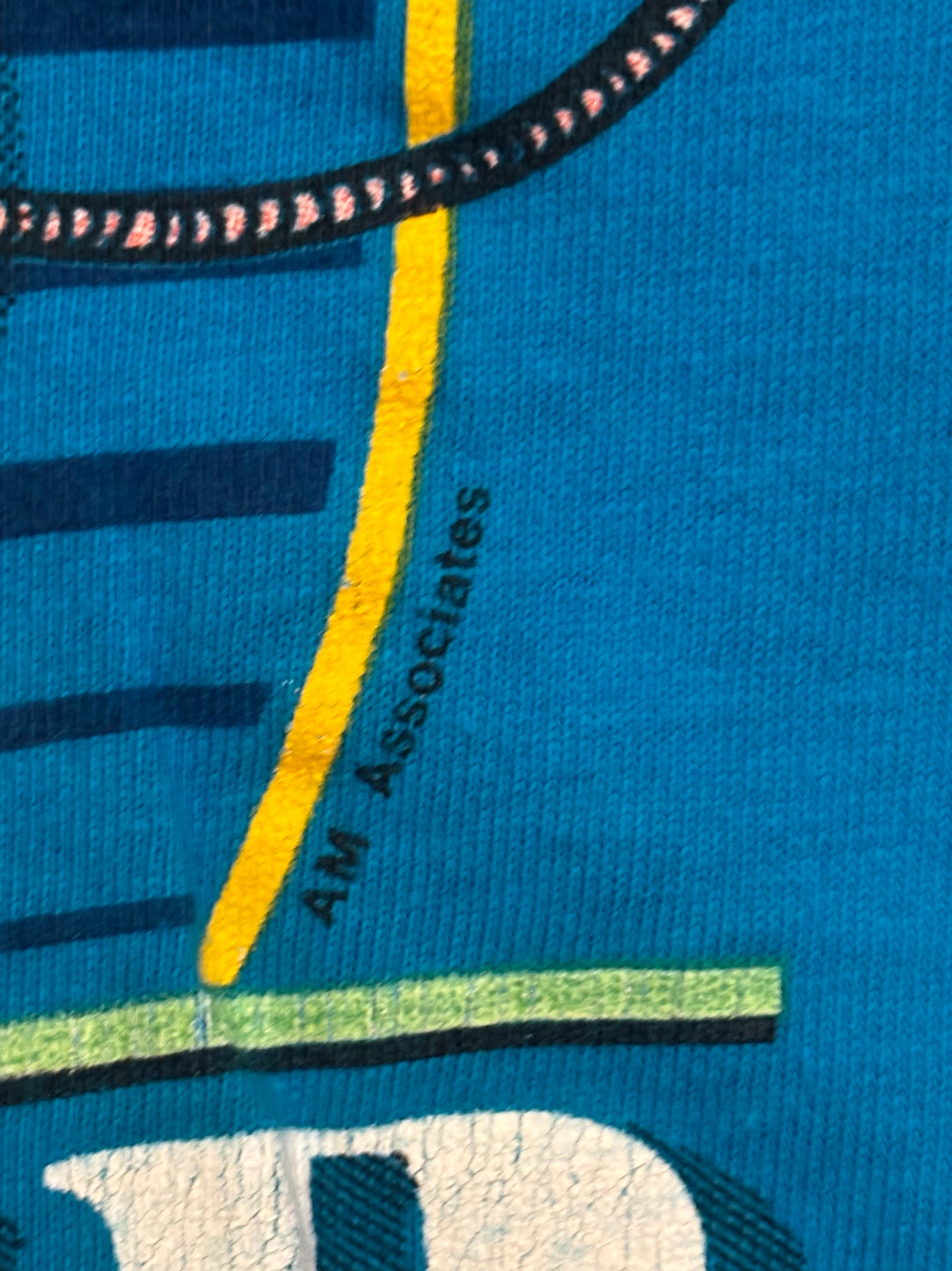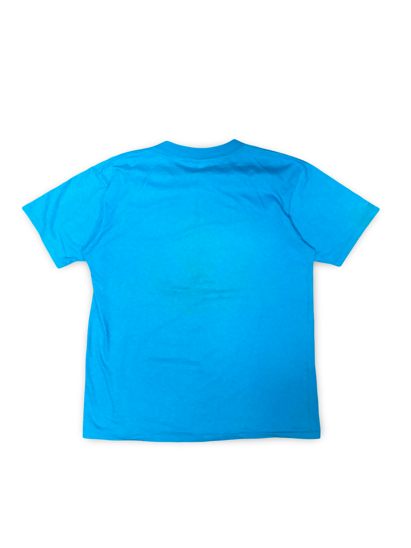 Crafted from 100% soft cotton in a vibrant turquoise blue, this shirt offers that perfect broken-in vintage feel. Made proudly in the USA, with an authentic 80s screen-printed design that makes it a collectible wardrobe staple.