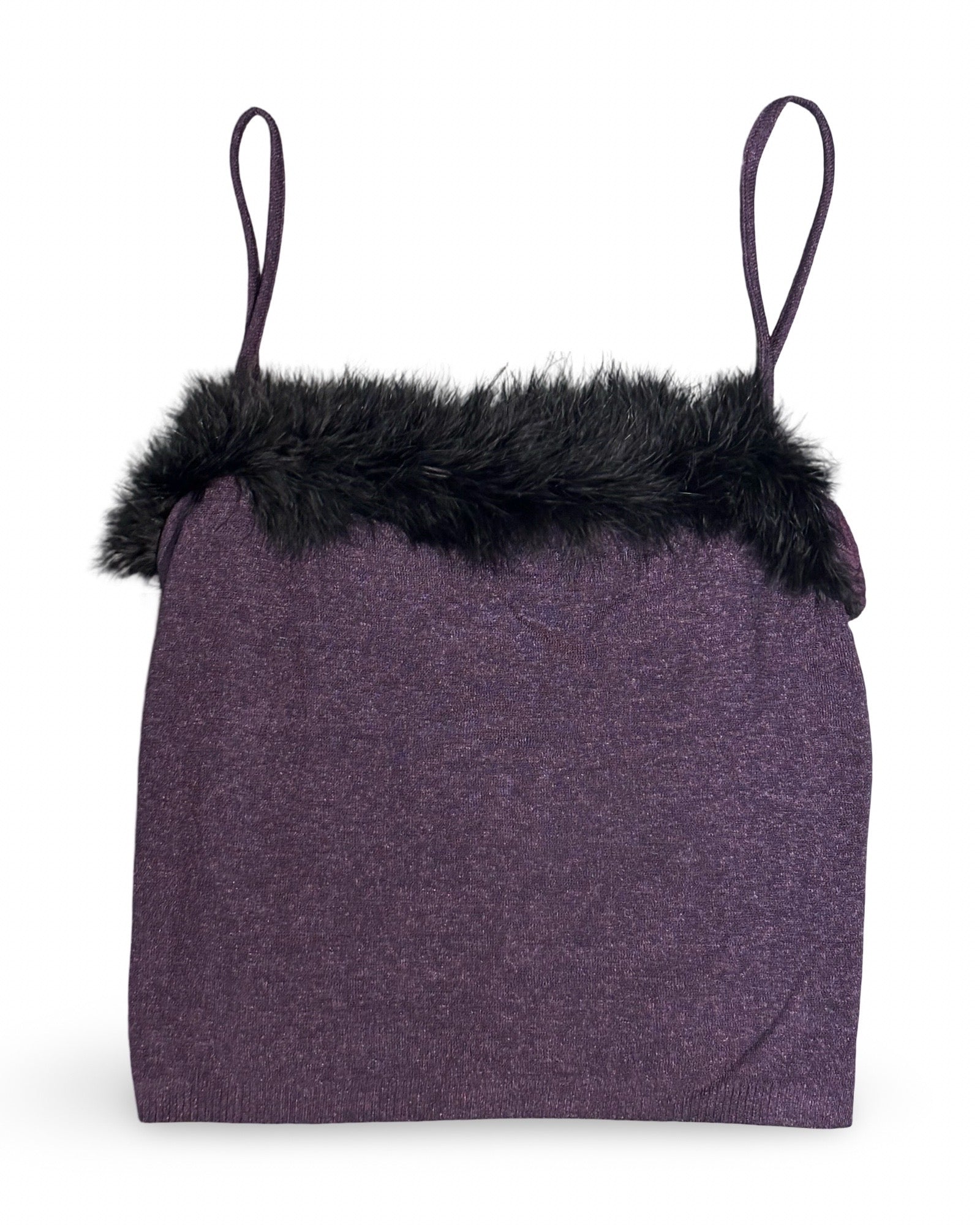 Vintage XOXO Black Feather Accent Tank Purple Stretch Fabric Size L