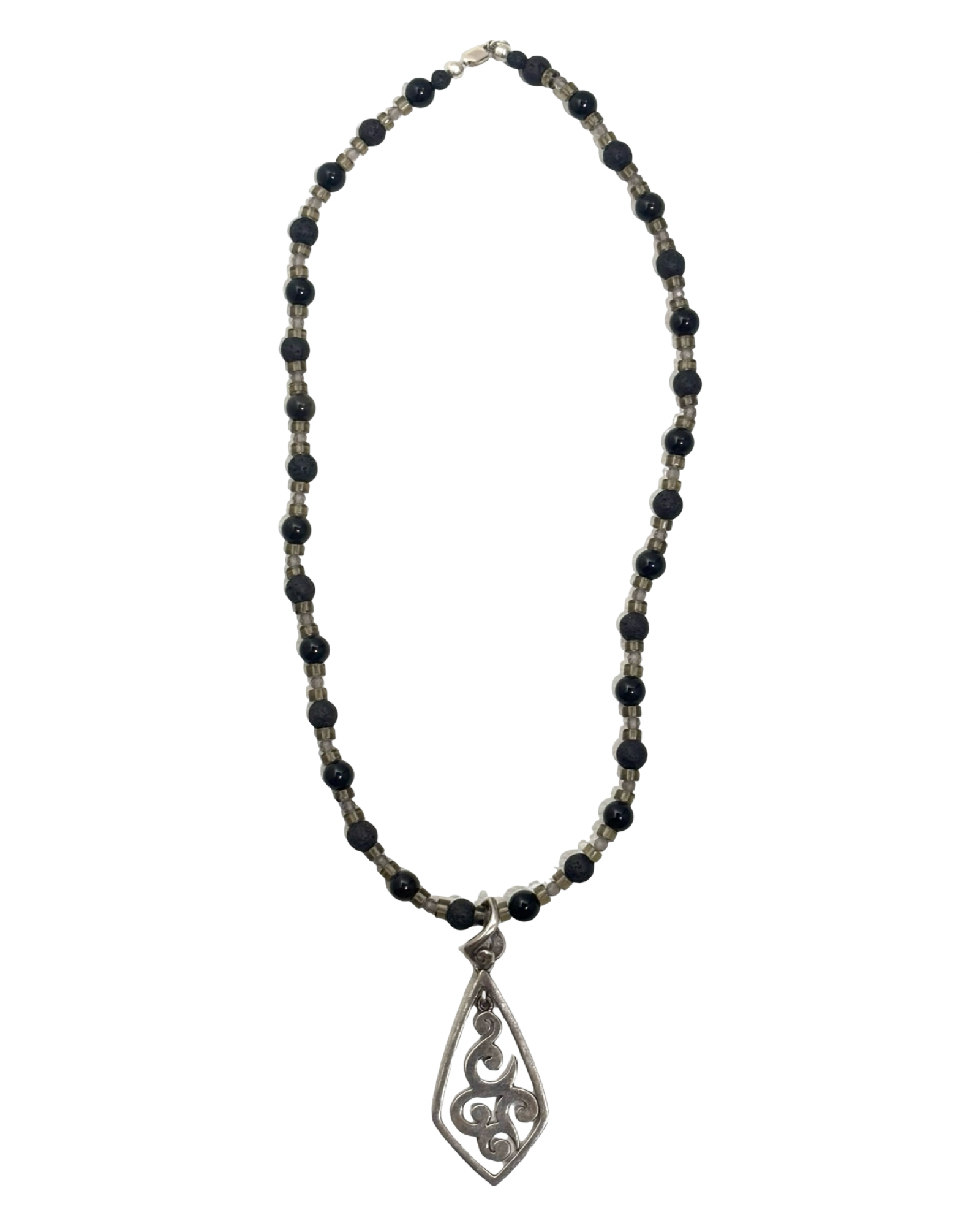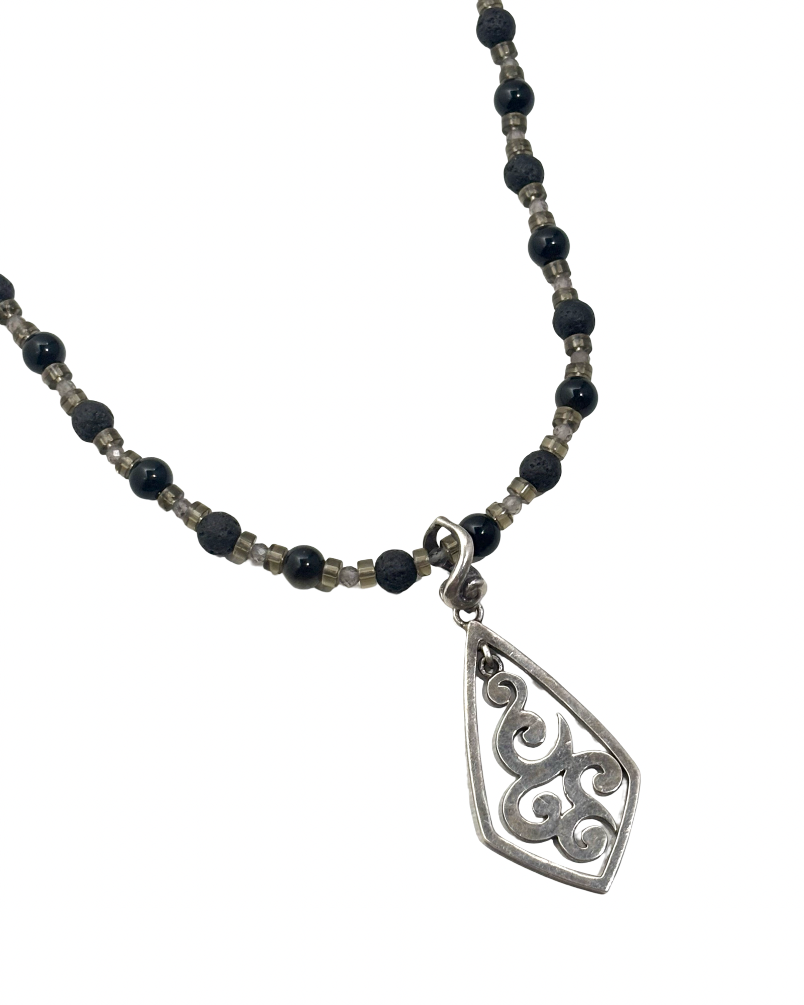 Written in Smoke - Obsidian, Lava Rock, & Smoky Quartz Gemstone Necklace w/ Antique Silpada Sterling Silver Pendant